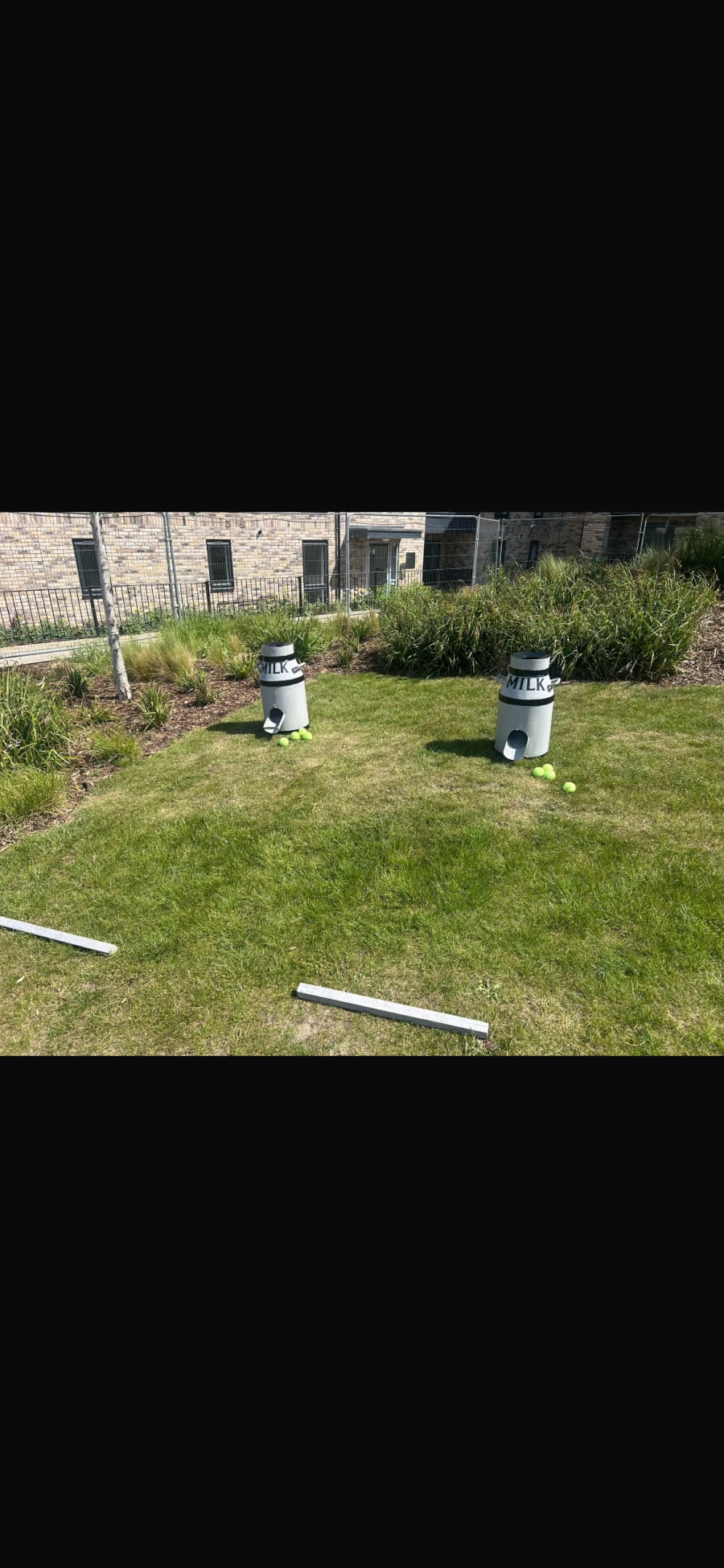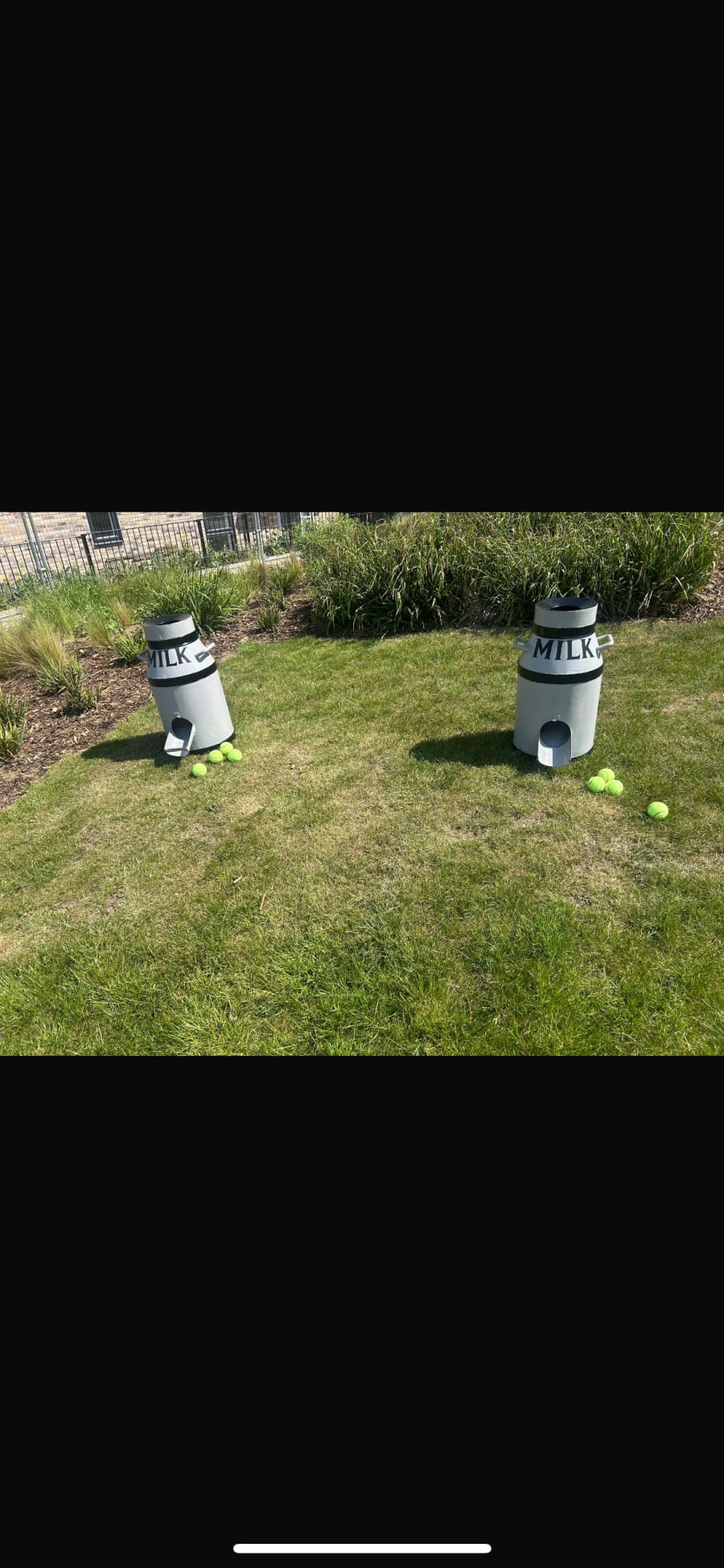 The Aim of the milk churn is to get a ball in.