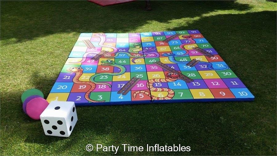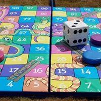This is our fantastic new GIANT snakes and ladders game, is fantastic for family BBQ entertainment, Garden parties, weddings, birthdays and events whatever the occasion. Up to 4 players at once. This giant snakes and ladders is a great garden game, and can be used indoors or out.